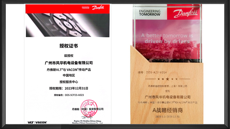 1、廣州風華公司介紹:廣州市風華機電設備有限公司是丹佛斯中國一級代理商,主要代理丹佛斯傳動與控制部的相關產品,公司有著多年應用和銷售自動化與驅動產品的經驗,專注于食品飲料、包裝、染整、化工、塑料、橡膠、機床、水處理等行業,并提供整套的傳動解決方案與產品。丹佛斯變頻器自從在中國市場投放以來已被廣泛應用在鋼鐵、煙草、食品飲料、水及污水處理、暖通空調、紡織機械、礦業、造紙業、制冷業和汽車業等領域,憑借高質量的產品、不斷革新的技術和優質的服務,其信譽日益深入人心,并贏得各界